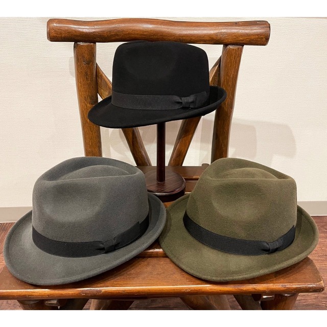 折りたたみ可能な中折れフェルトハットです。 かっこつけたい海外旅行やライブ活動の移動中などに最適です。 長時間放置してシワがついてしまったらスチームアイロンの中温できれいに元に戻ります。 ※カラーについて 画像9枚目=BLACK 画像10枚目=BROWN 画像11枚目=LIGHT GRAY 画像12枚目=BEIGE 毛100% <サイズ調整可能> <折りたたみ可能>