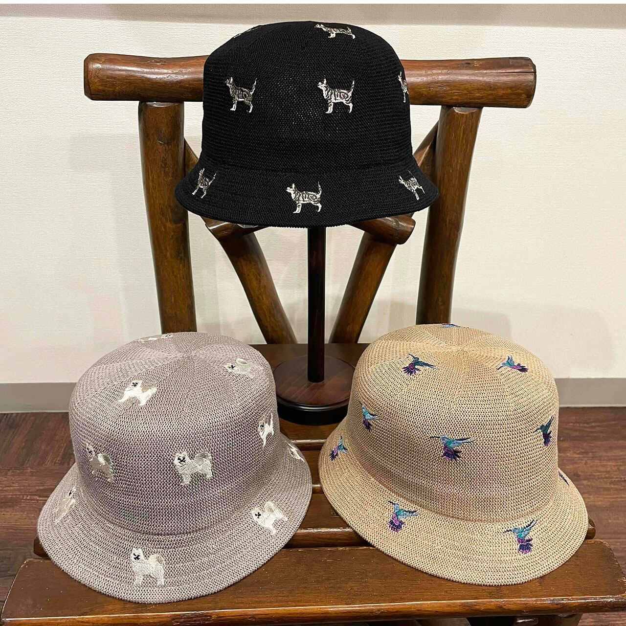 大人気のアニマル総刺繍入りサーモバケットハットバージョンです。