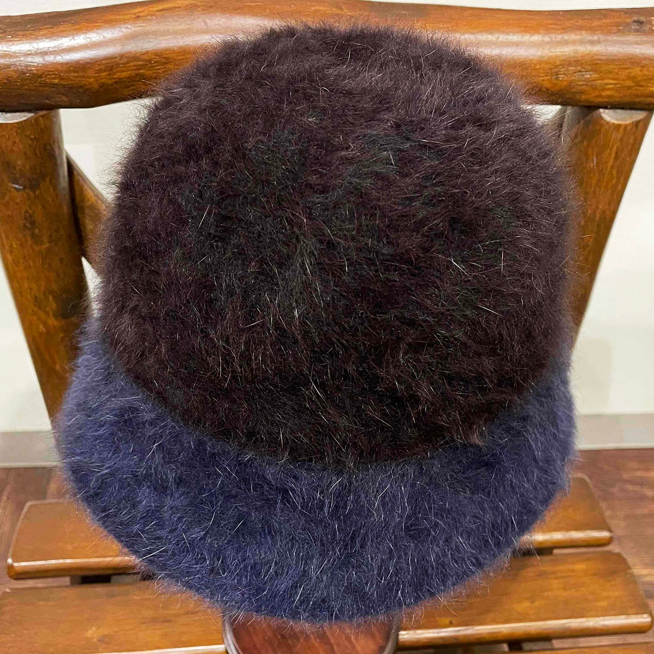 2色のカラーで切り替えたアンゴラチューリップハット。