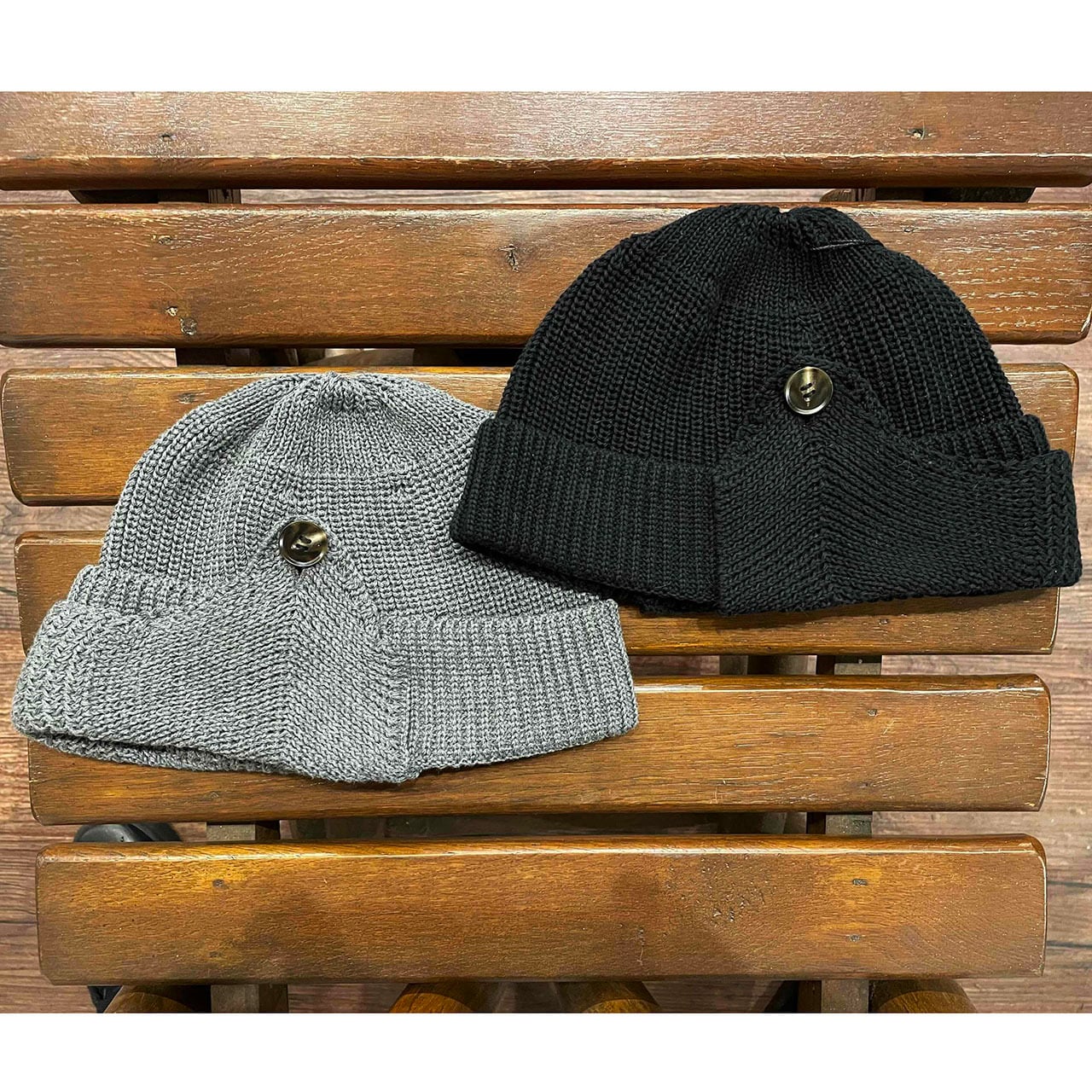 ボディについたボタンを外すと耳当てになるハンティングニット帽です。