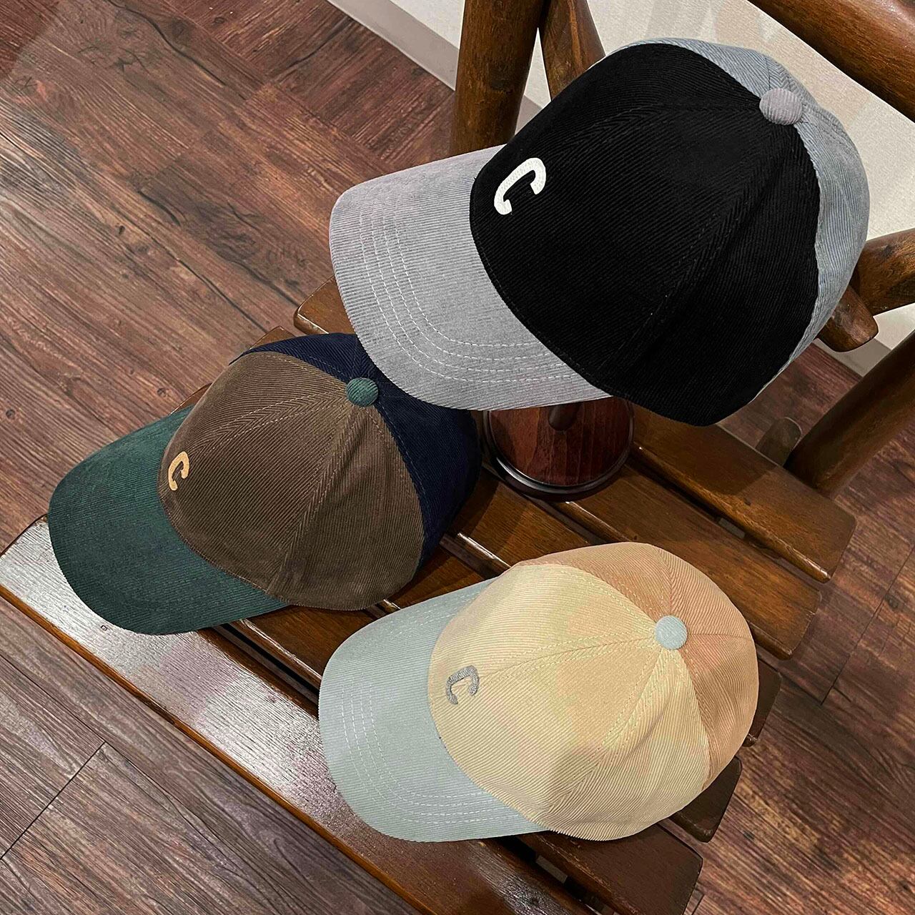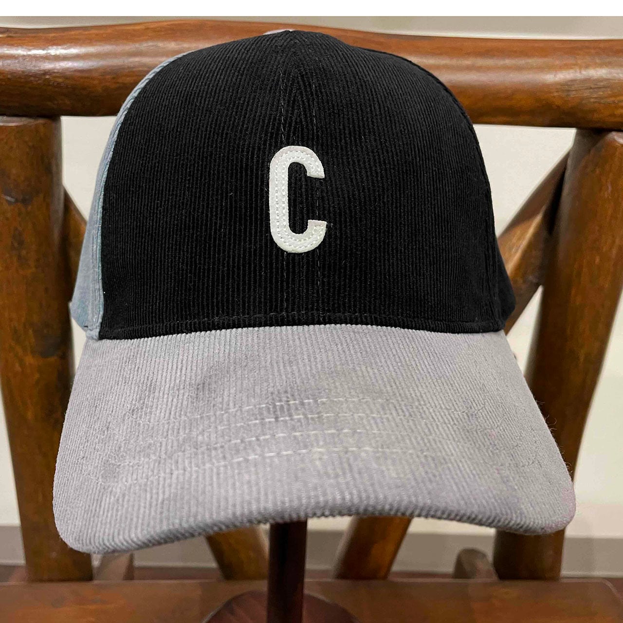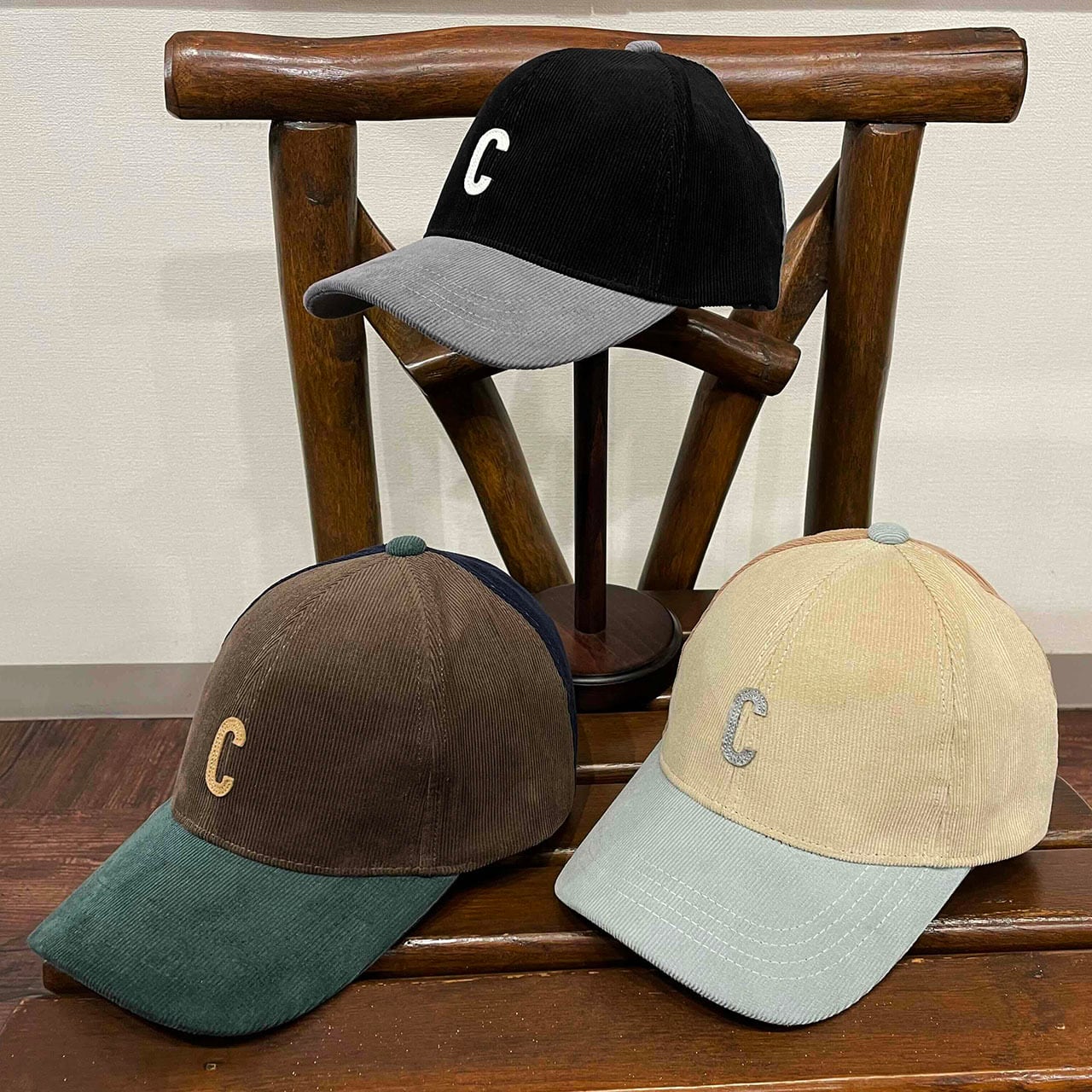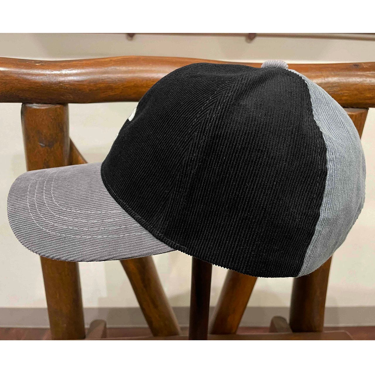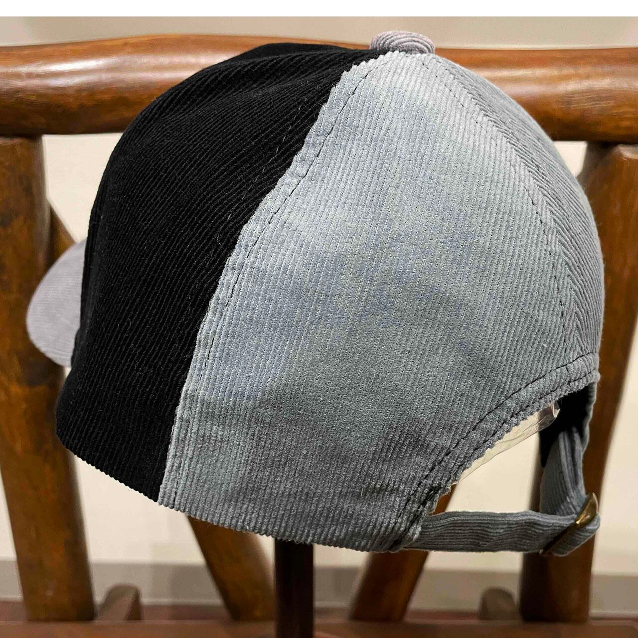 3色のコーディロイをアシンメトリーに切り替えたローキャップです。