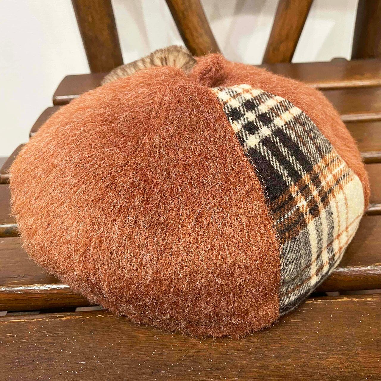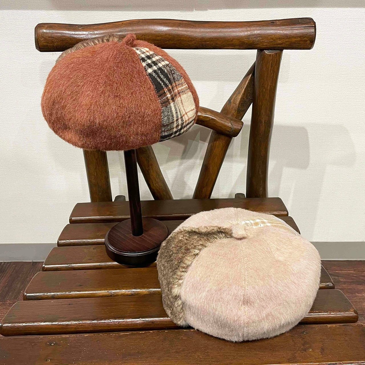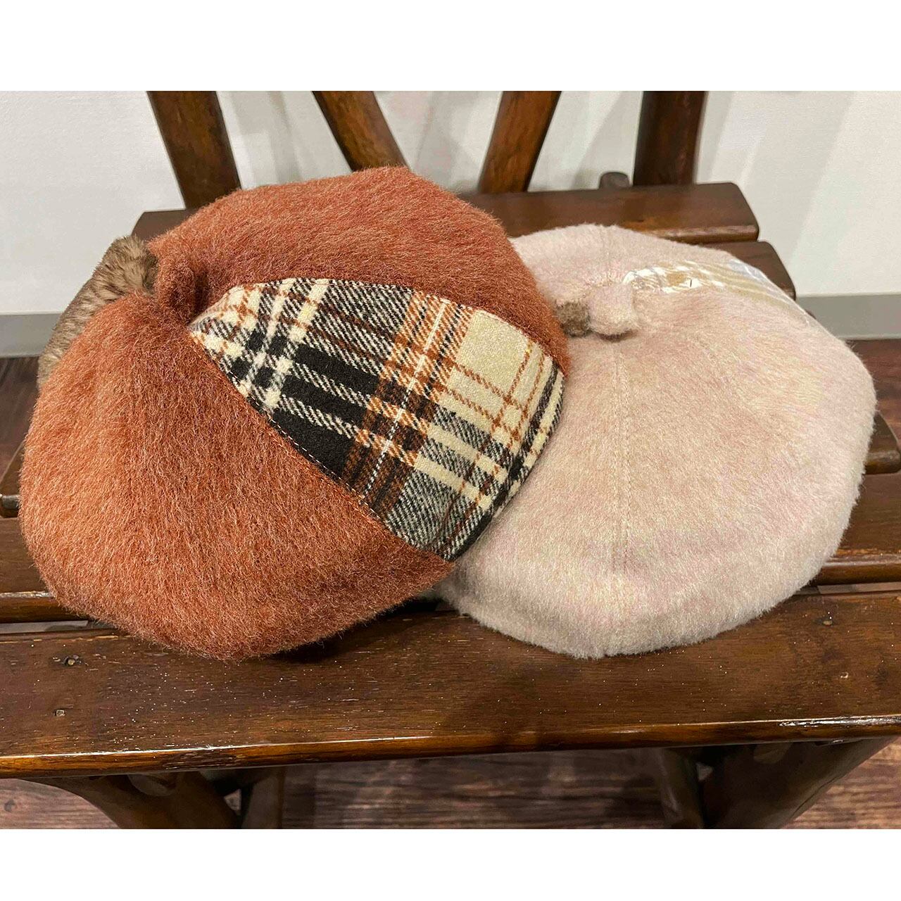サイドを2種類の生地(CHECK,ファー)で切り替えて変化をつけました。