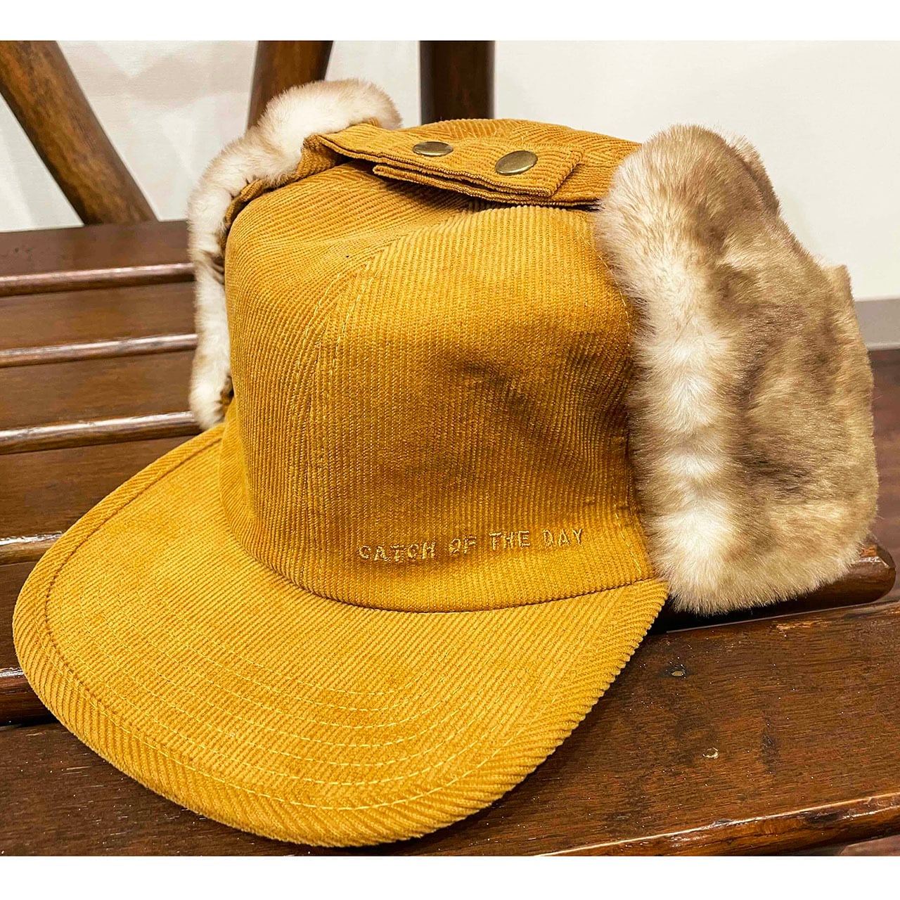 コーディロイ地に合わせた同色刺繍をフロントにさりげなくいれてます。