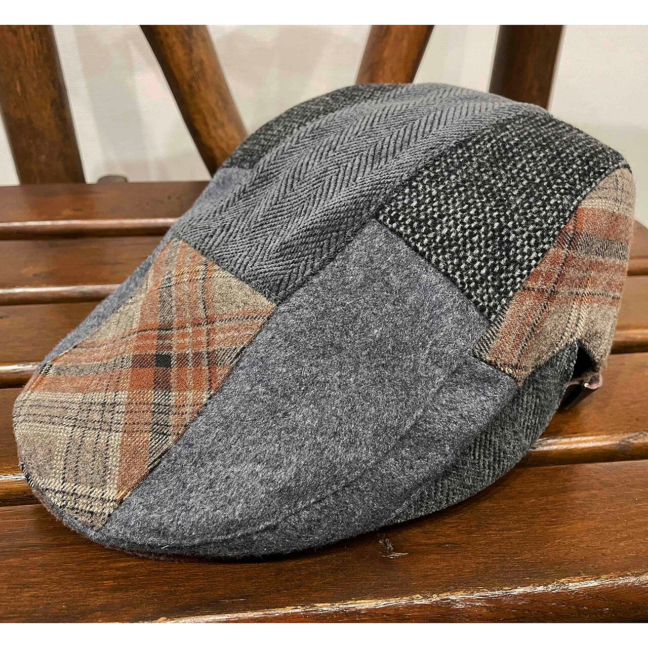 シャギー、コーディロイ、チェックなど数種類の生地をパッチワーク風に組み合わせたハンチング。