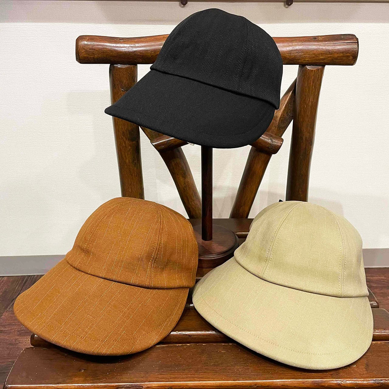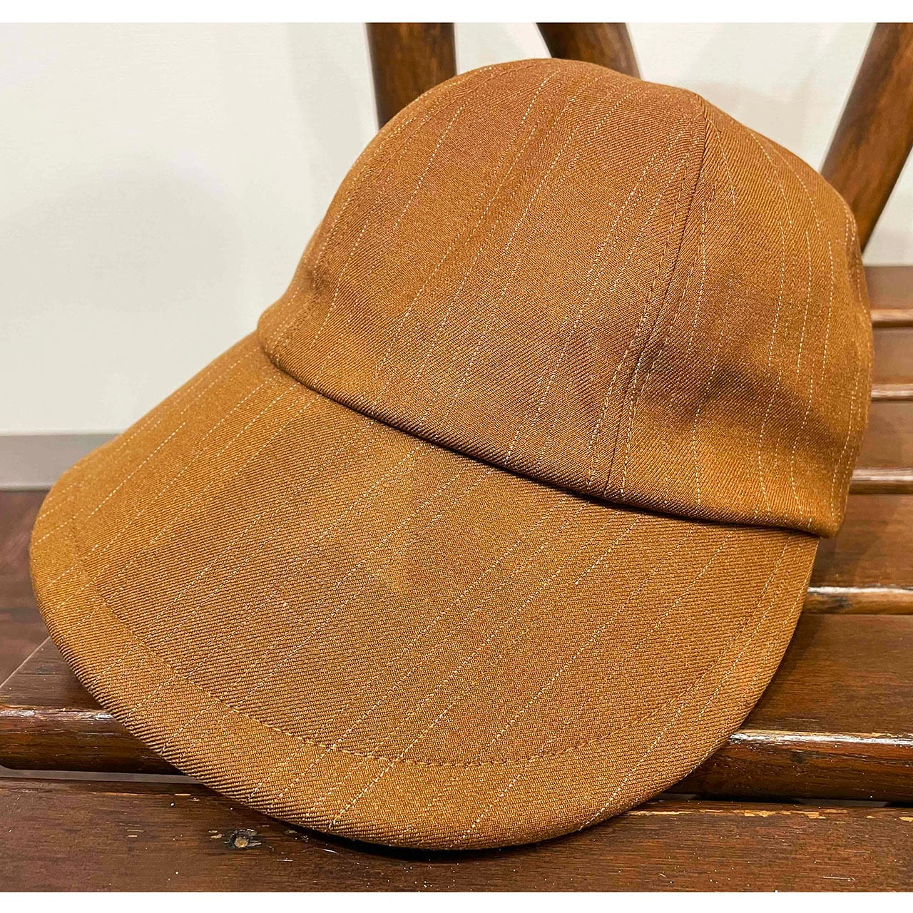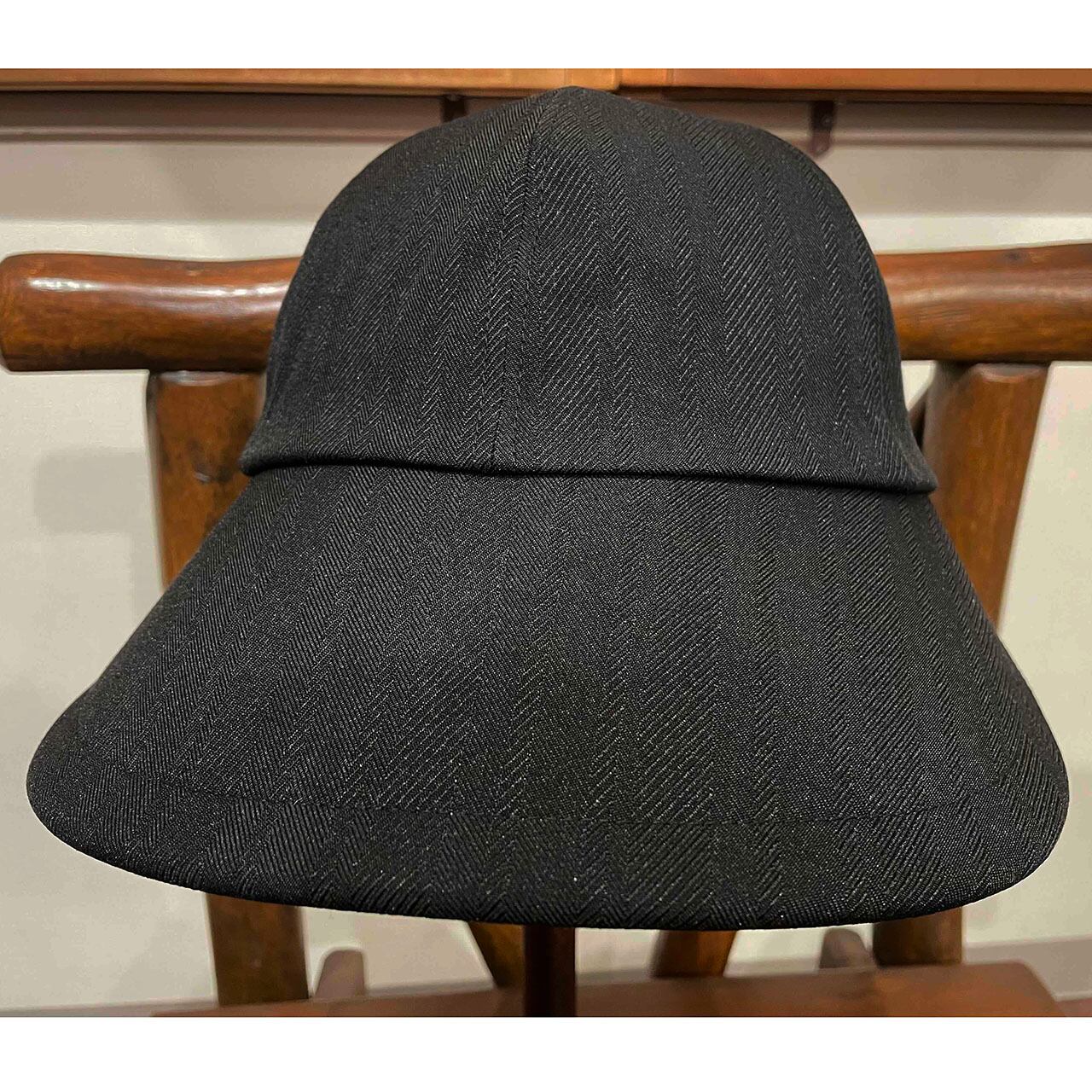 ツバを横に大きくとった日よけキャップです。
