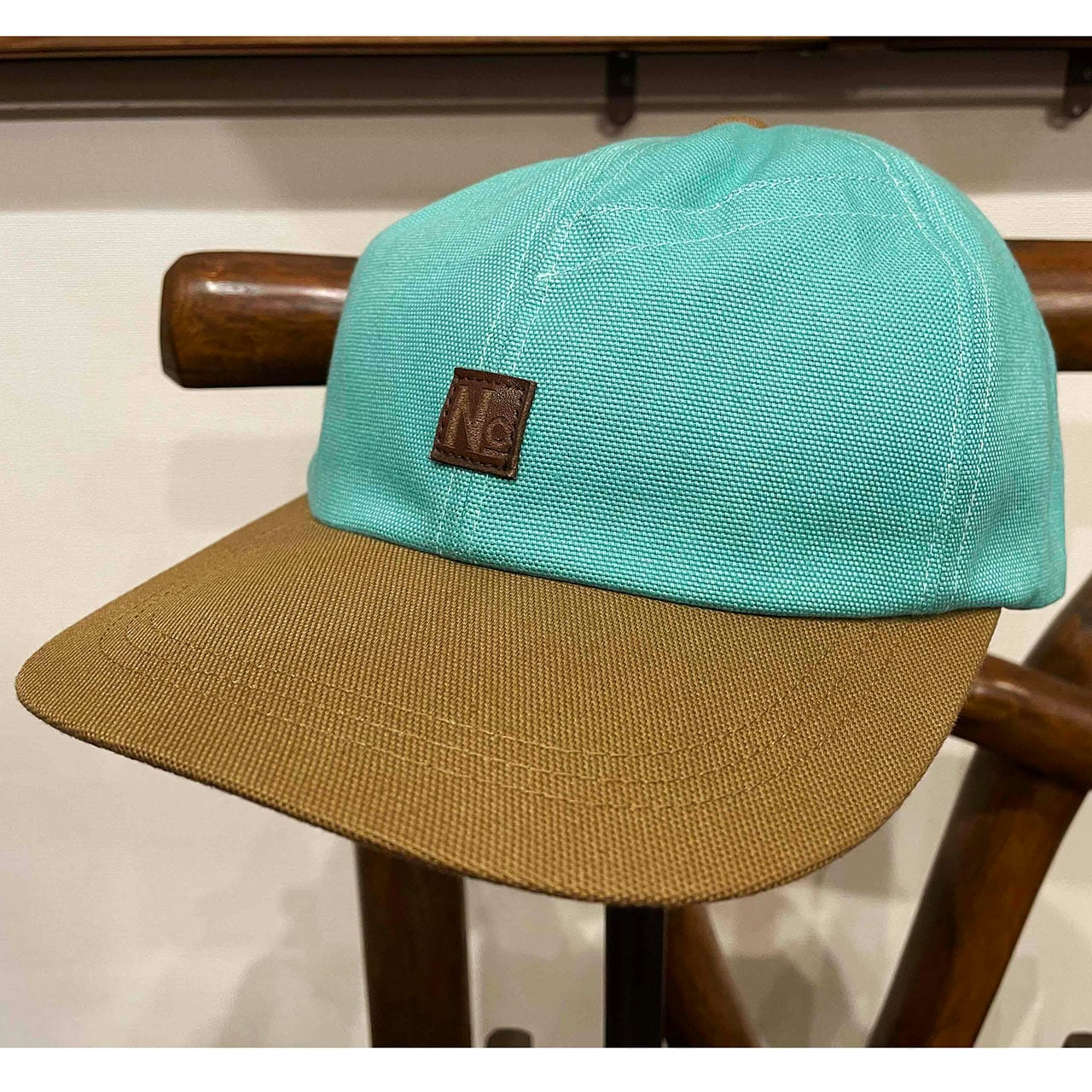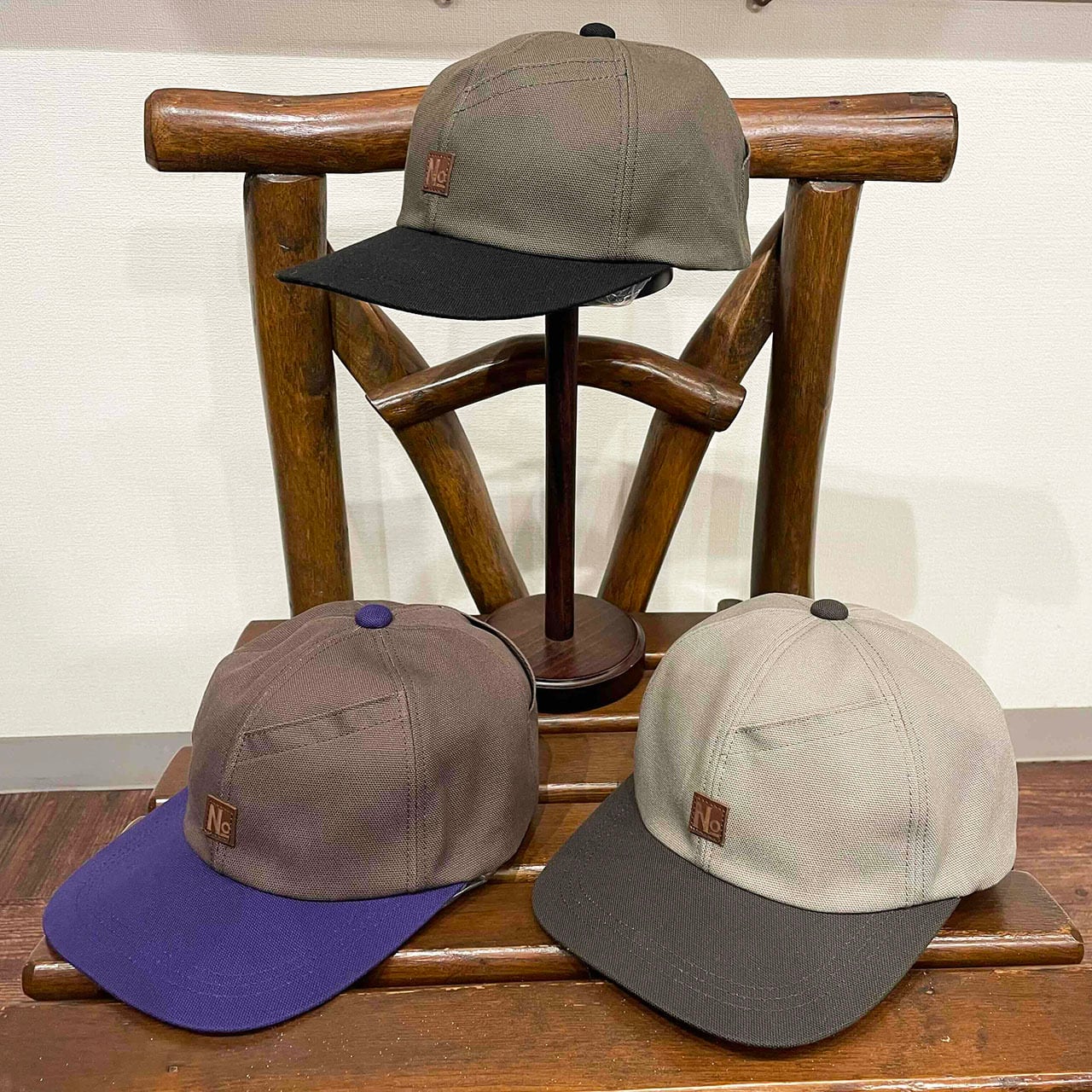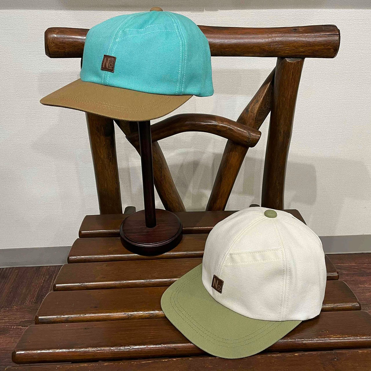 2か所にポケット、頭部分とツバをバイカラー、フロントのレザーパッチネームで