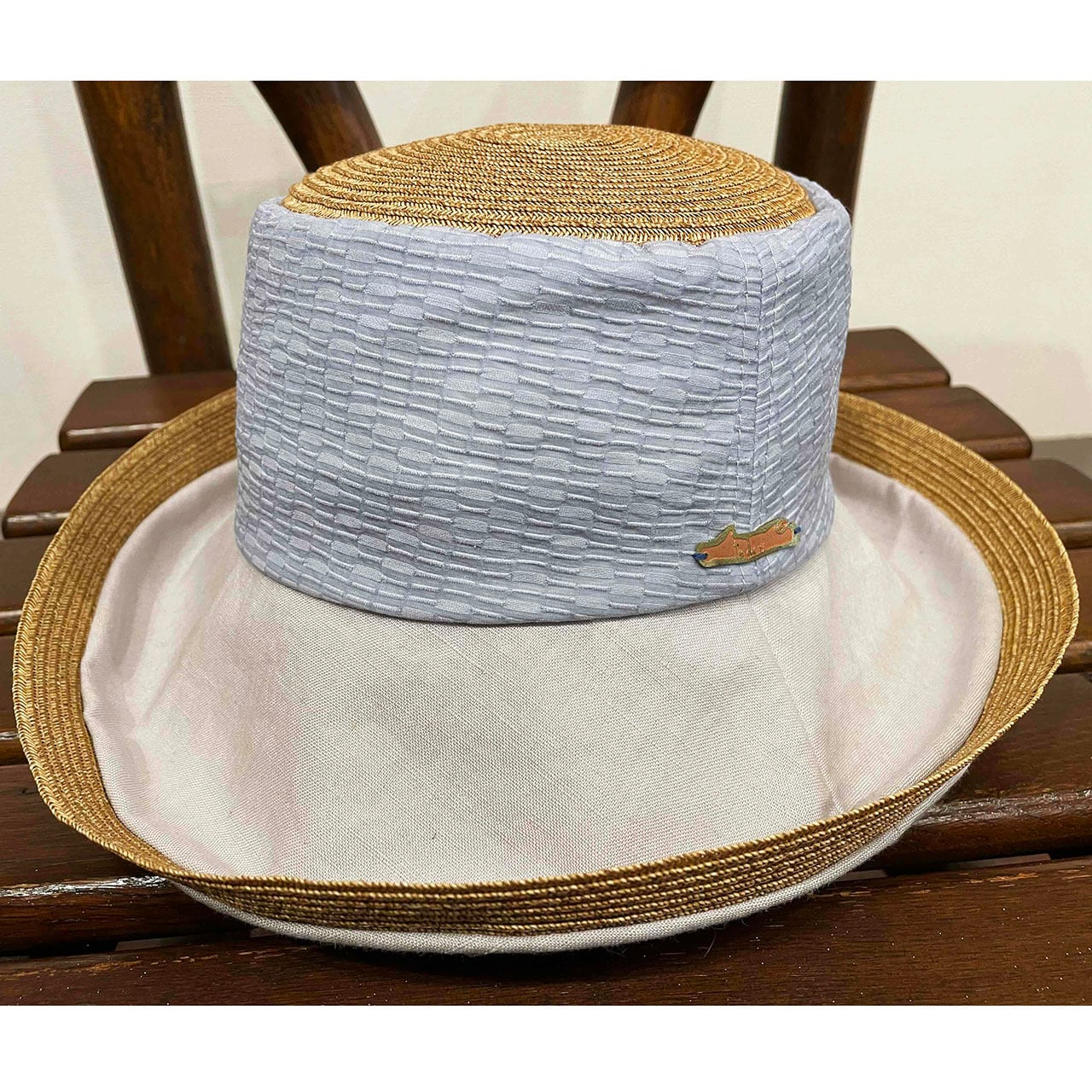 光沢のある涼し気な生地が夏らしい布帛×ブレードのコンビハットです。