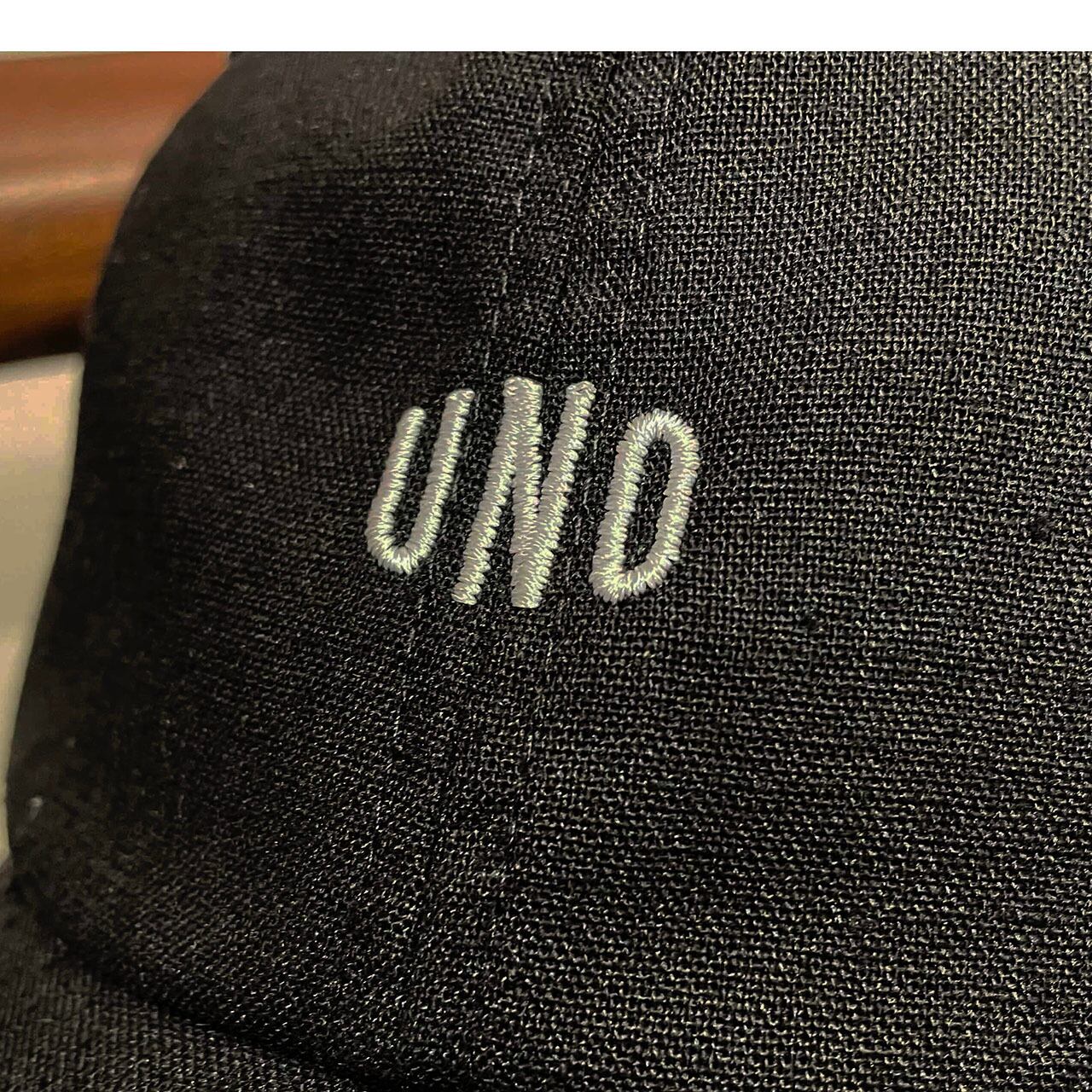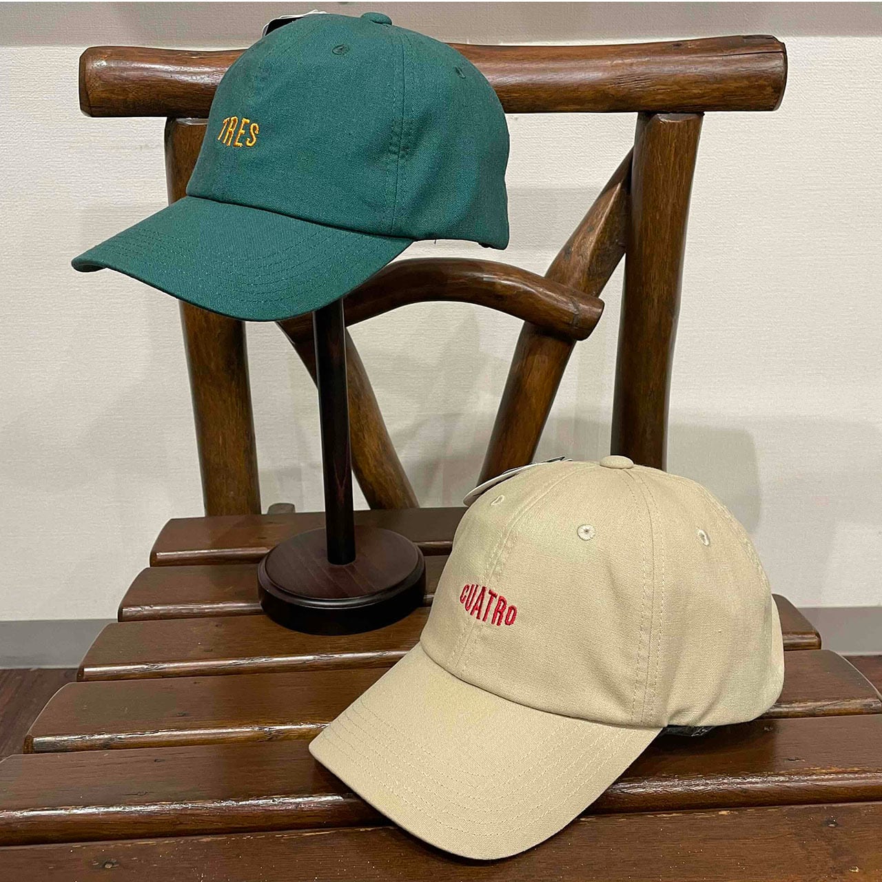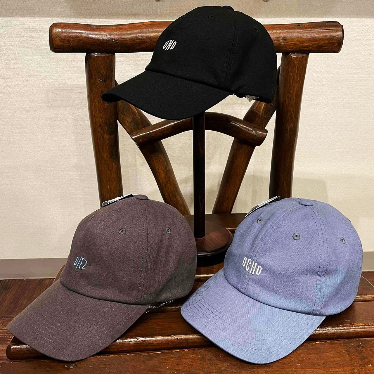 スペイン語の数字(NUMERO)を刺繍した6パネルのキャップ。