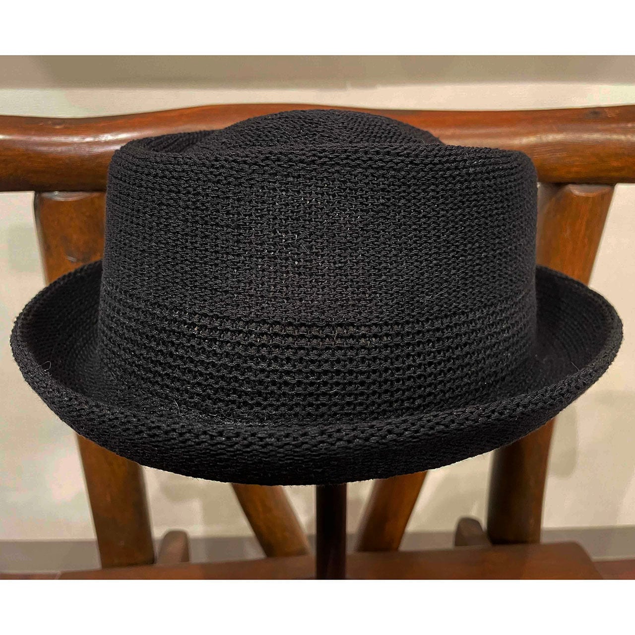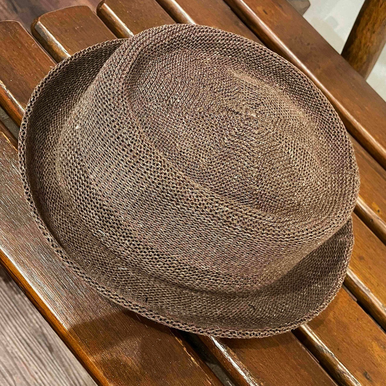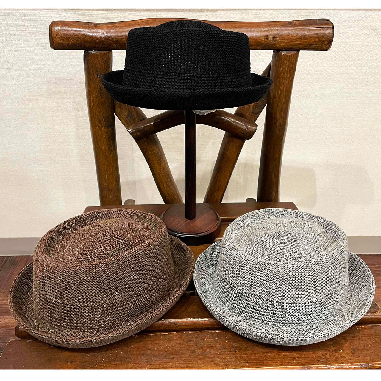 夏らしい麻混糸を使用したニットのポークパイハットです。