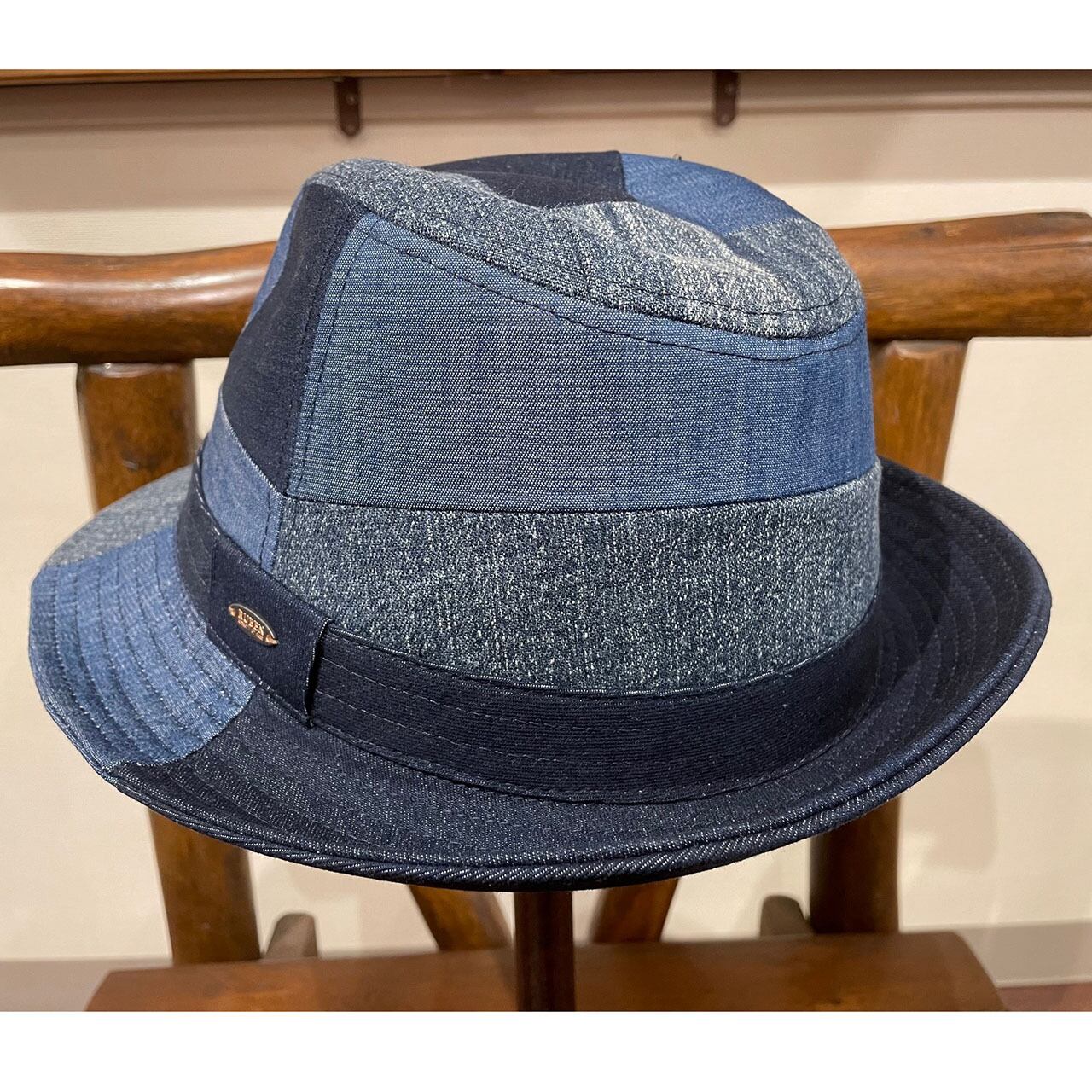 デニムを濃淡の違うパーツでつぎはぎしてパッチワークに仕上げた