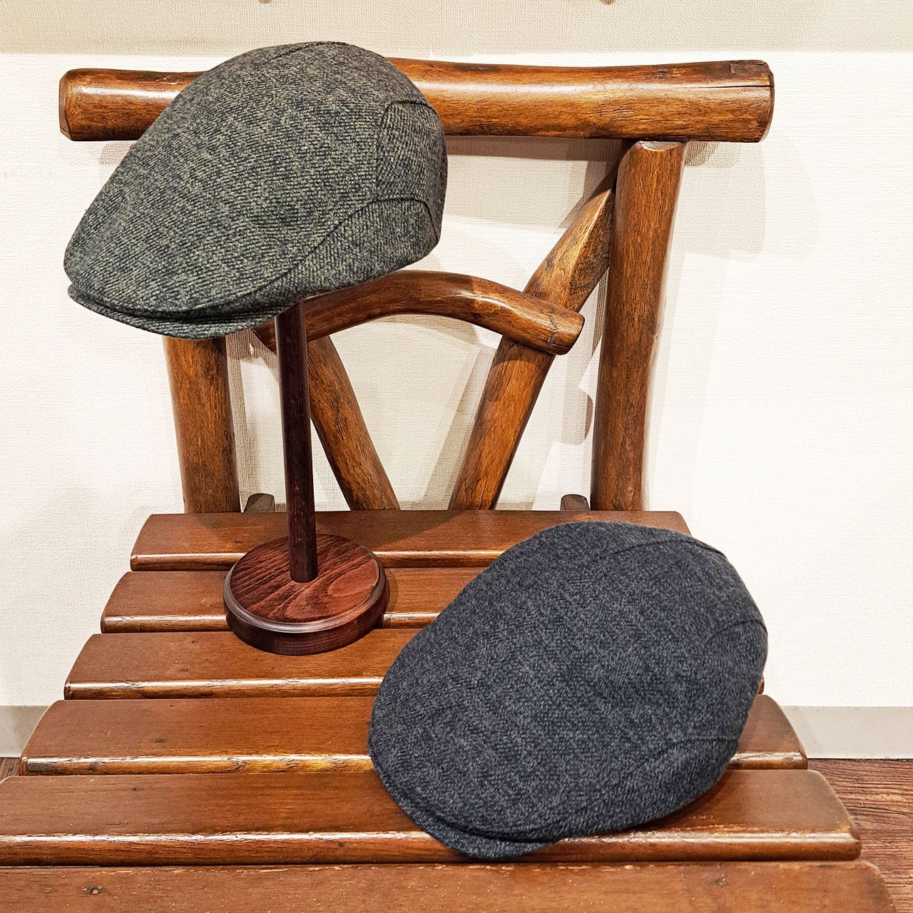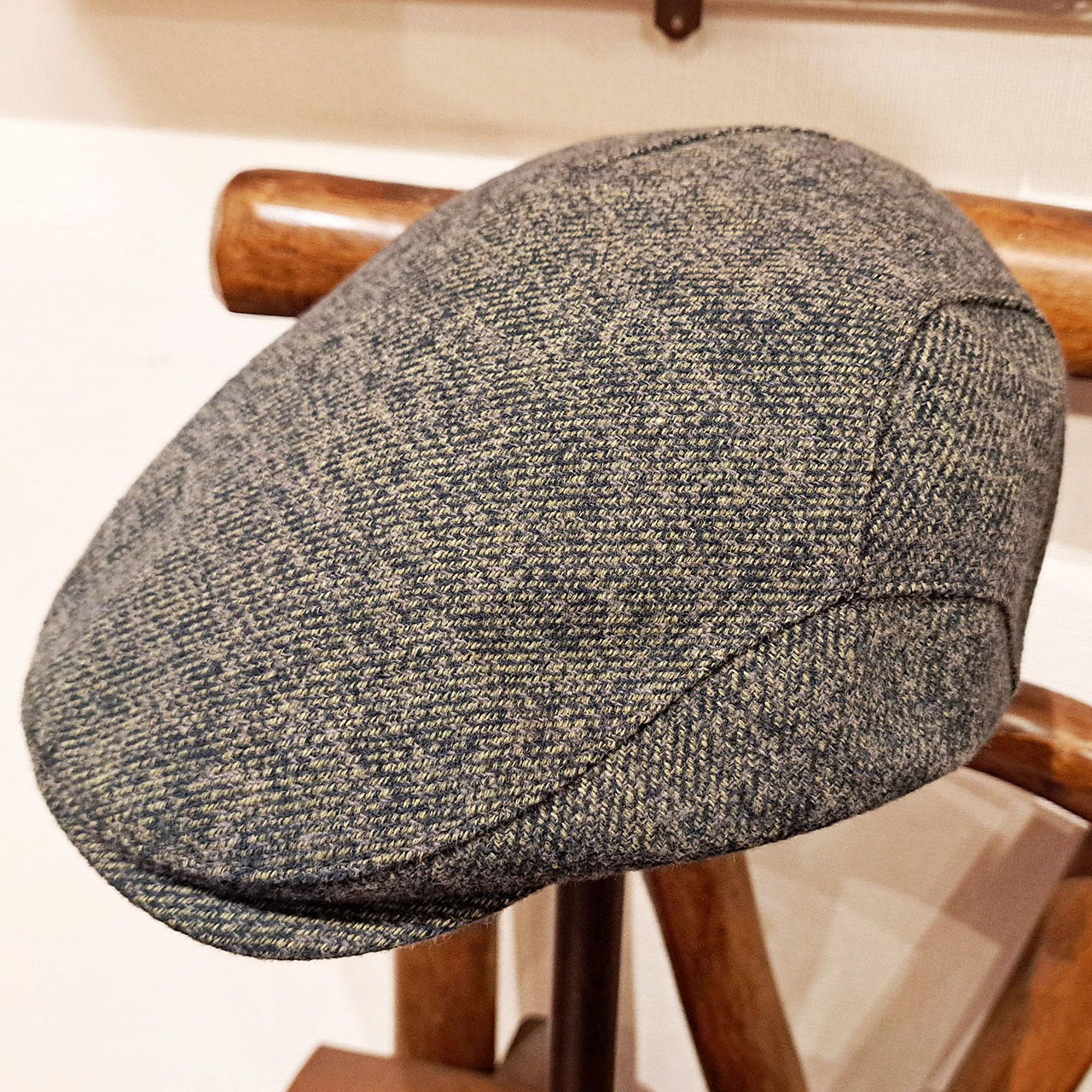 3色の異なる糸を1本に撚り合わせて配色した3つ杢コットンツイードハンチングです。